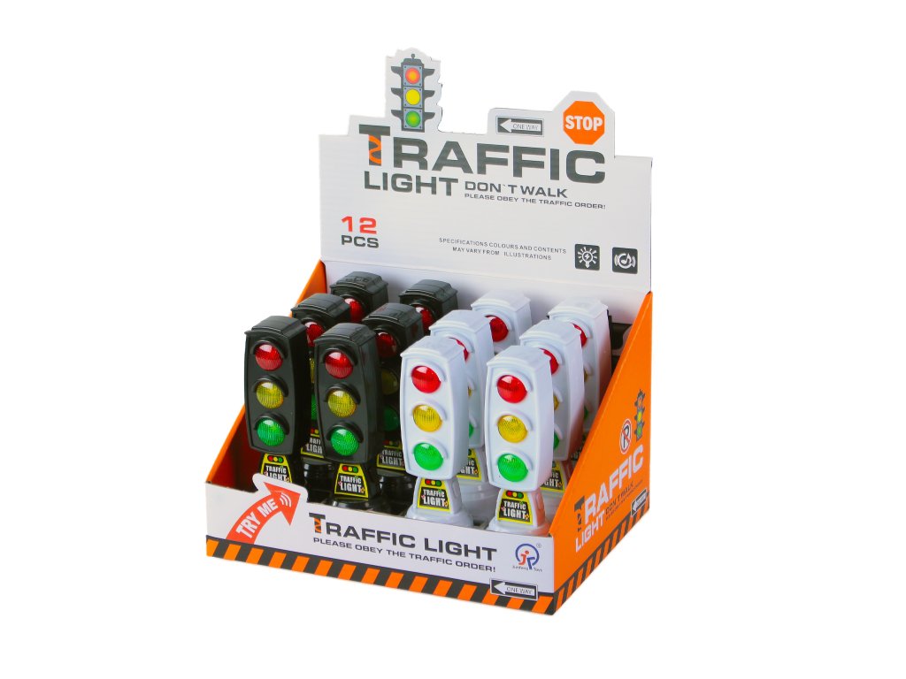Senzační semafor se světelným a zvukovým efektem. Semafor vyžaduje použití 3 ks baterií typu LR44, které jsou součástí výrobku. Výška semaforu je cca 13 cm. Tlačítko na pravé straně spustí světelnou signalizaci semaforu a zvuk. Zmáčknutím tlačítka na levé straně začnou hrát různé melodie spolu se světelným efektem.