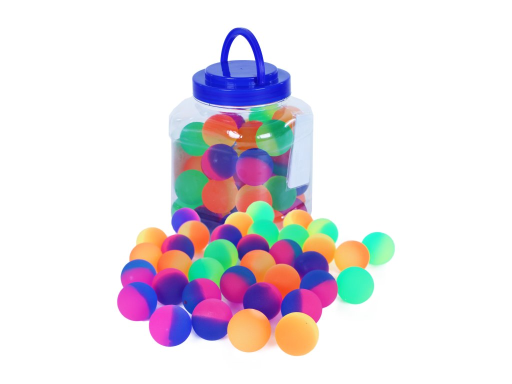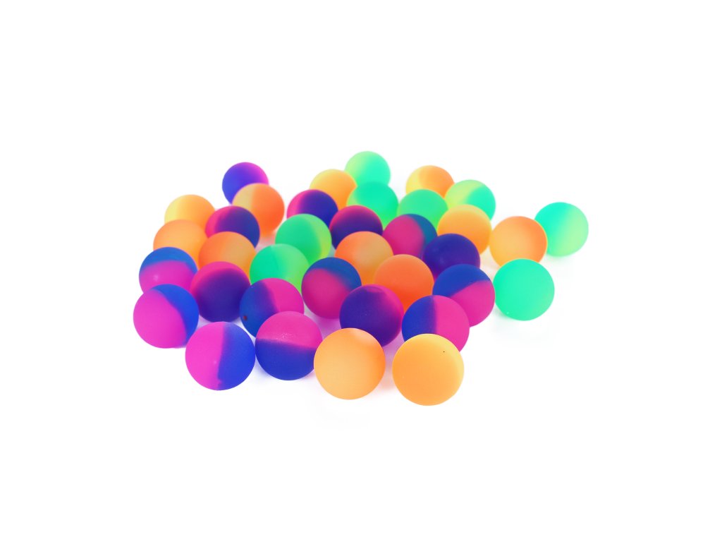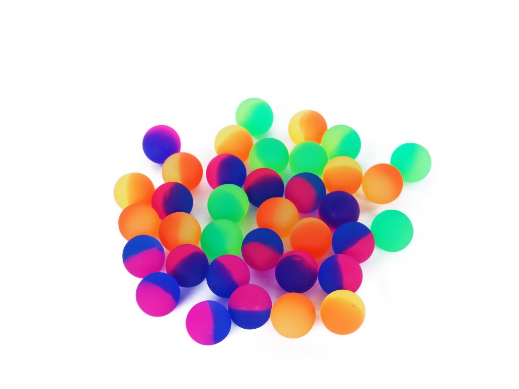 Skákací dvoubarevná kulička. Skákací míčky jsou oblíbenou hračkou pro děti i dospělé, ať už pro samotnou hru, nebo zábavu a radost, což může pomoci snížit stres a zlepšit náladu. V různých barvách. Prodejné pouze po celém balení 36 ks.