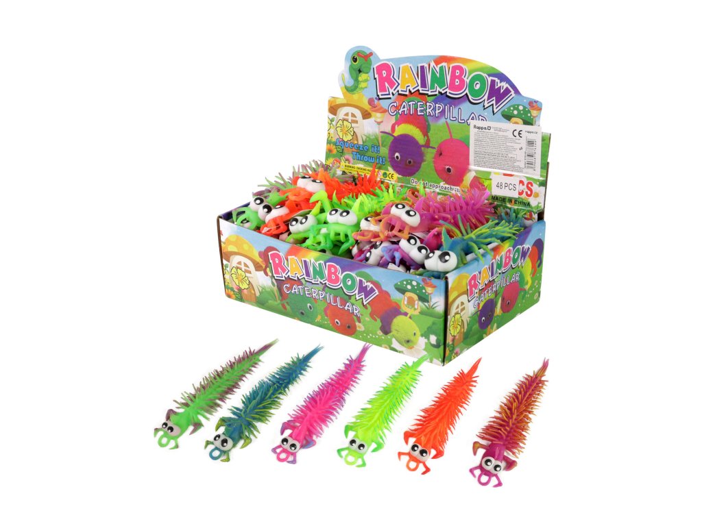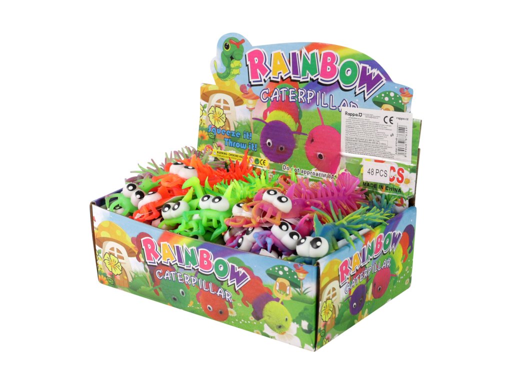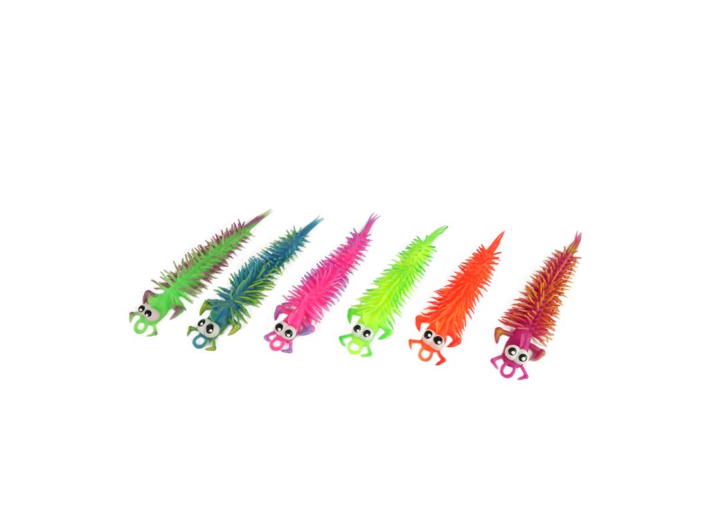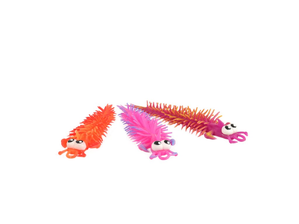 Zábavná žertovinka. Barevná stonožka s velkýma očima, kterou můžete různě natahovat.