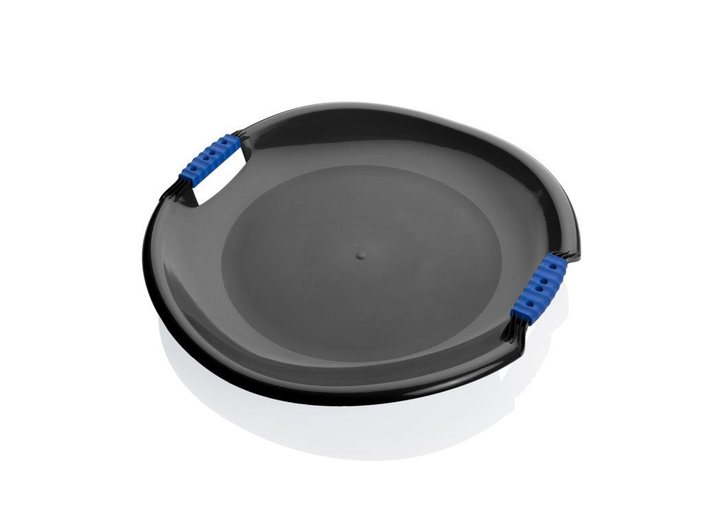 Sáňkovací talíř Tornado Super černá. Průměr 54 cm, výška 8 cm. Pro děti i dospělé, řešení umožňující rotaci během jízdy praktické, skladné, odolné, protiskluzová úprava držadel. Váha 0,5 kg. Nosnost 50 kg. Provozní teplota -25 až 50 °C.