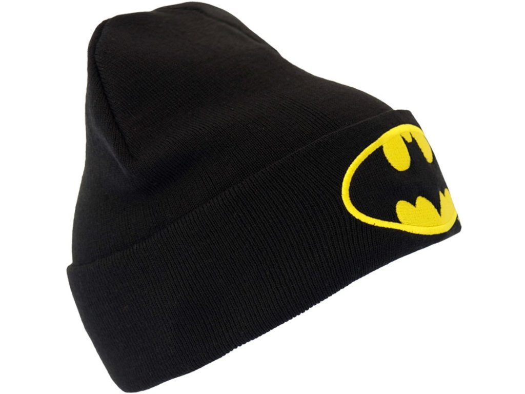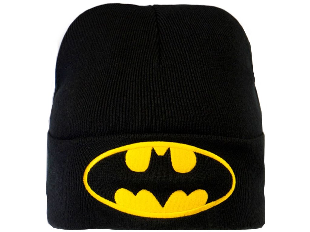 Černo-žlutá zimní čepice s logem komiksového hrdiny Batmana.