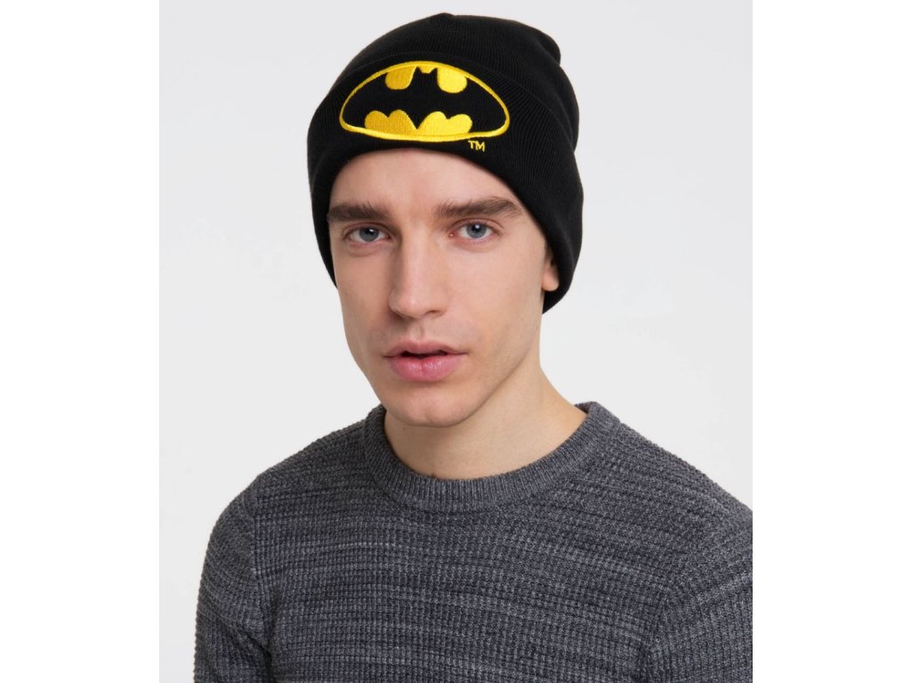 Oficiální zimní pletená čepice z katalogu fashion produktů s logem a grafikou komiksového hrdiny Batmana a společnosti Warner Bros.