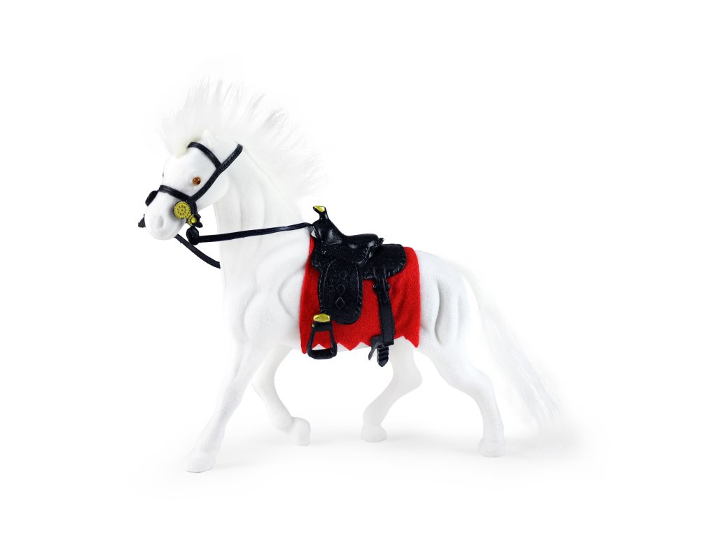 Tento koník z flisky je i osedlán a díky své kompaktní velikosti 16 cm je ideální pro hraní doma i na cestách. Děti s tímto koníkem mohou zažít nekonečné příběhy a dobrodružství.
