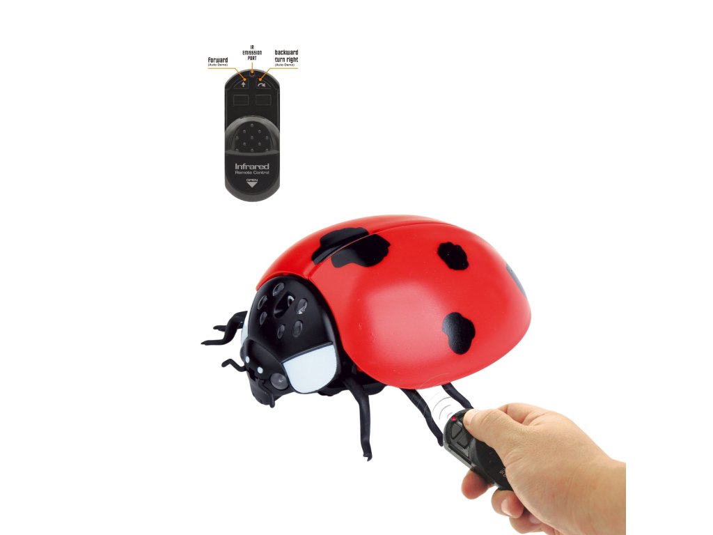 Velká beruška na dálkové ovládání. Lehké ovládání dvěma tlačítky. Beruška chodeí dopředu a při chůzi dozadu se otáčí a tím se mění směr její chůze.