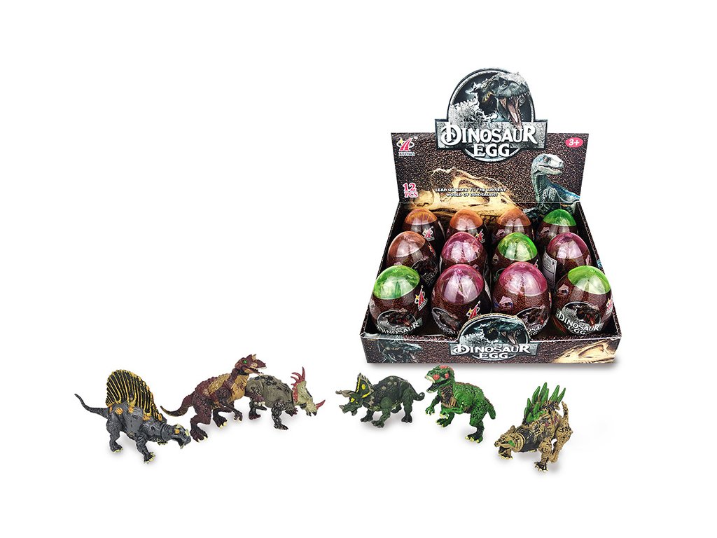 Vajíčko, ve kterém je schovaná plastová figurka dinosaura. 6 různých dinosaurů, nasbírej je všechny.