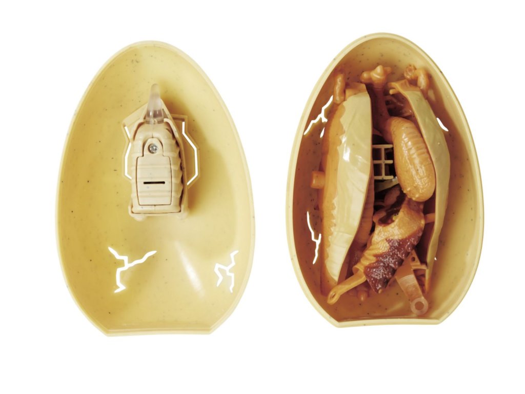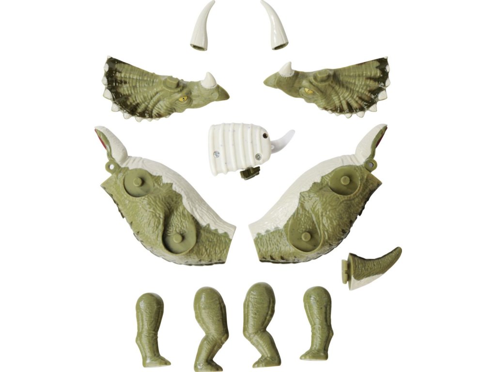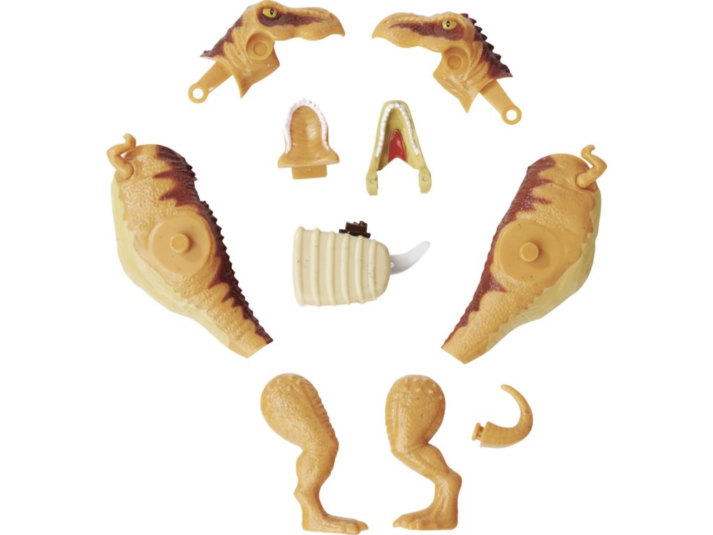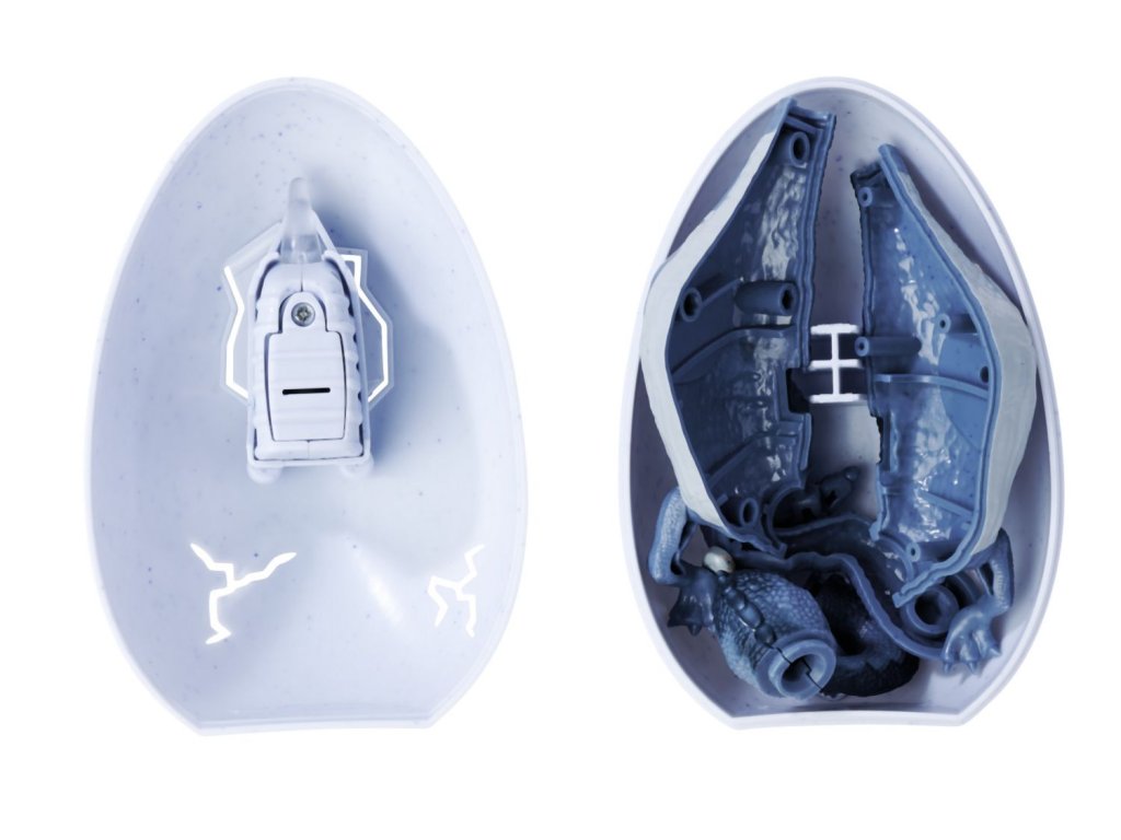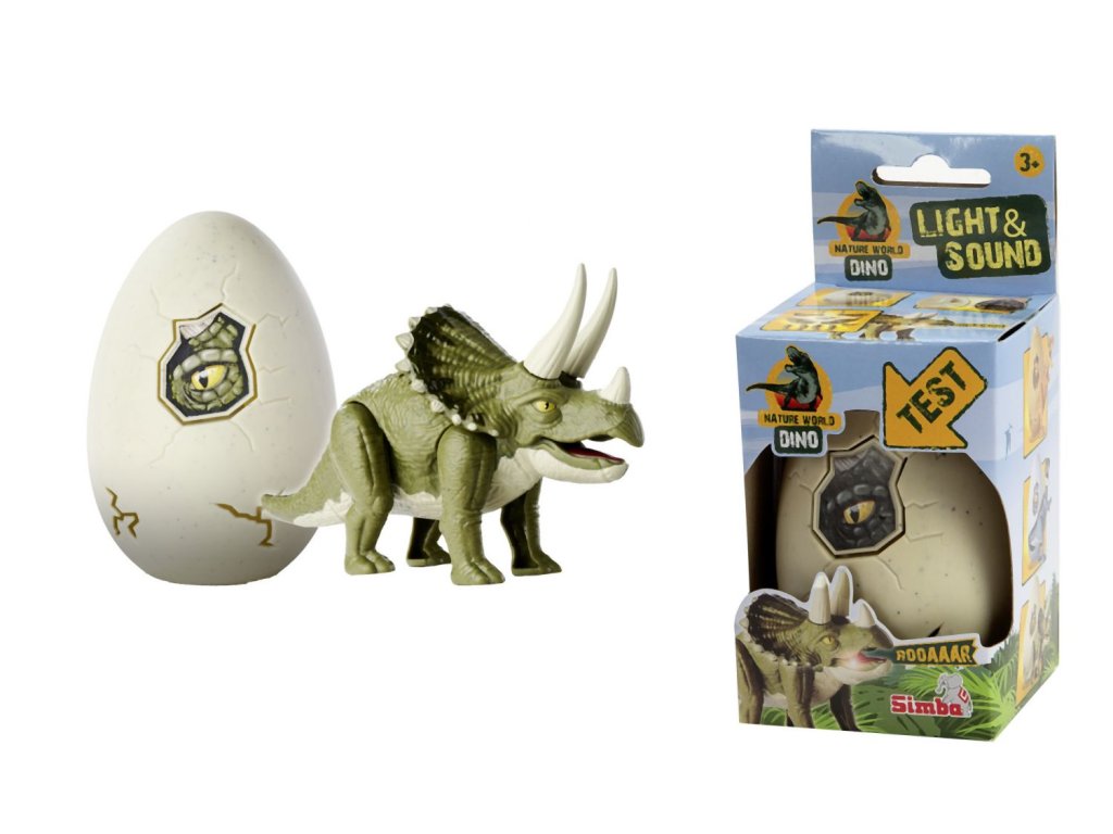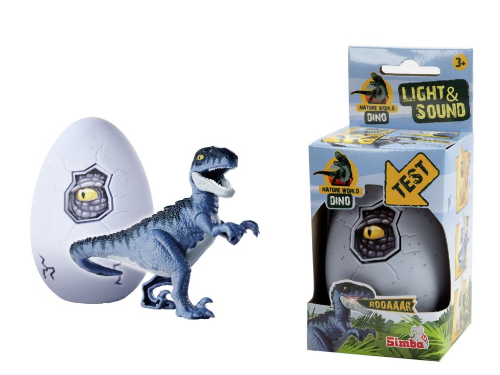 V každém vejci je schována figurka dinosaura o velikosti 14 cm, skládačka kostry dinosaura a návod. Dinosaurus svítí a vydává zvuky, 3 druhy - T-Rex, Velociraptor, Triceratops.