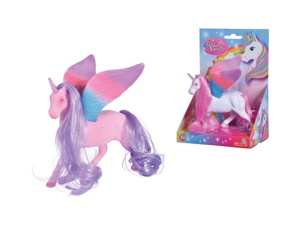 Figurka jednorožce s křídly a dlouhou hřívou. 2 druhy. Velikost 11 cm.