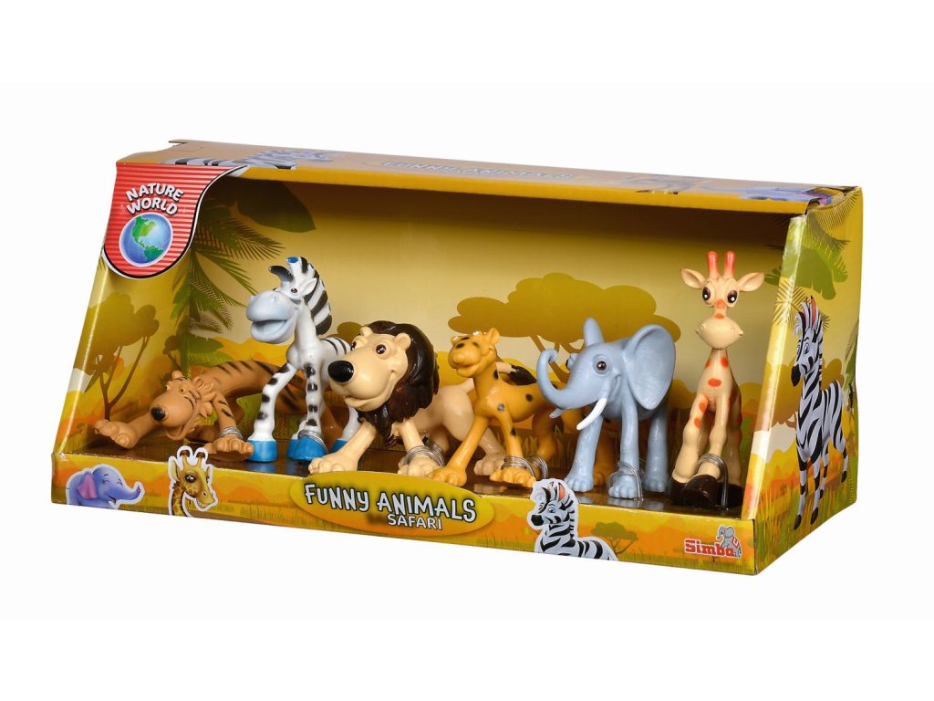 6 safari zvířátek 9 - 12 cm v setu - tygr, zebra, lev, gepard, slon, žirafa.