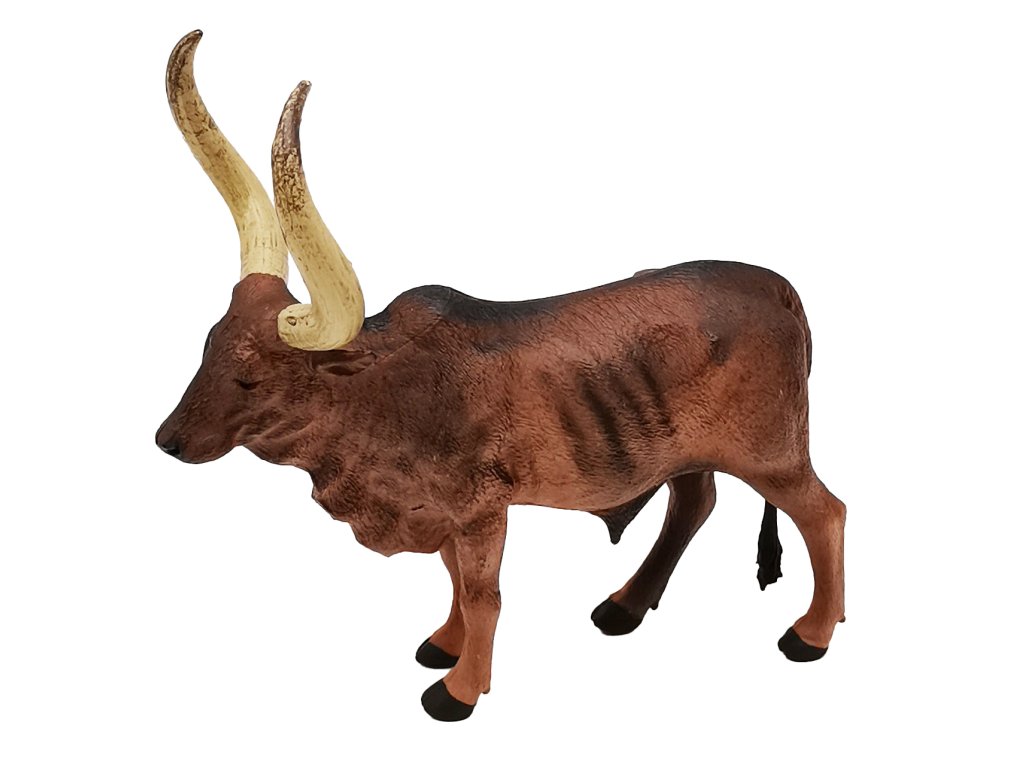 Figurka Kráva Ankole-Watusi býk. Velikost 12,5 cm. Přesné rozměry 12,5x6,5x12,5 cm.