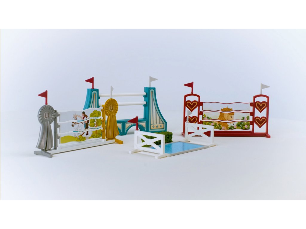 Trénink je zábava, ale vítězství na soutěži ve skocích přes překážky je ještě lepší! S překážkami z kolekce HORSE CLUB od schleich® zvládneš se svým koněm obojí. Aby byl trénink co nejefektivnější, můžeš výšku překážek postupně zvyšovat. Takhle můžeš svého koně pomalu seznamovat se skoky podle toho, co zvládne, a postupně zlepšovat jeho techniku. Až bude připravený, můžete se vydat na skutečnou přehlídku. Je tu dokonce příkop a živý plot, před kterým je nádrž s vodou. Ještě že jste před tím tolik trénovali! Rozměry: 19x15x6cm. Vhodné pro děti od 3 let.