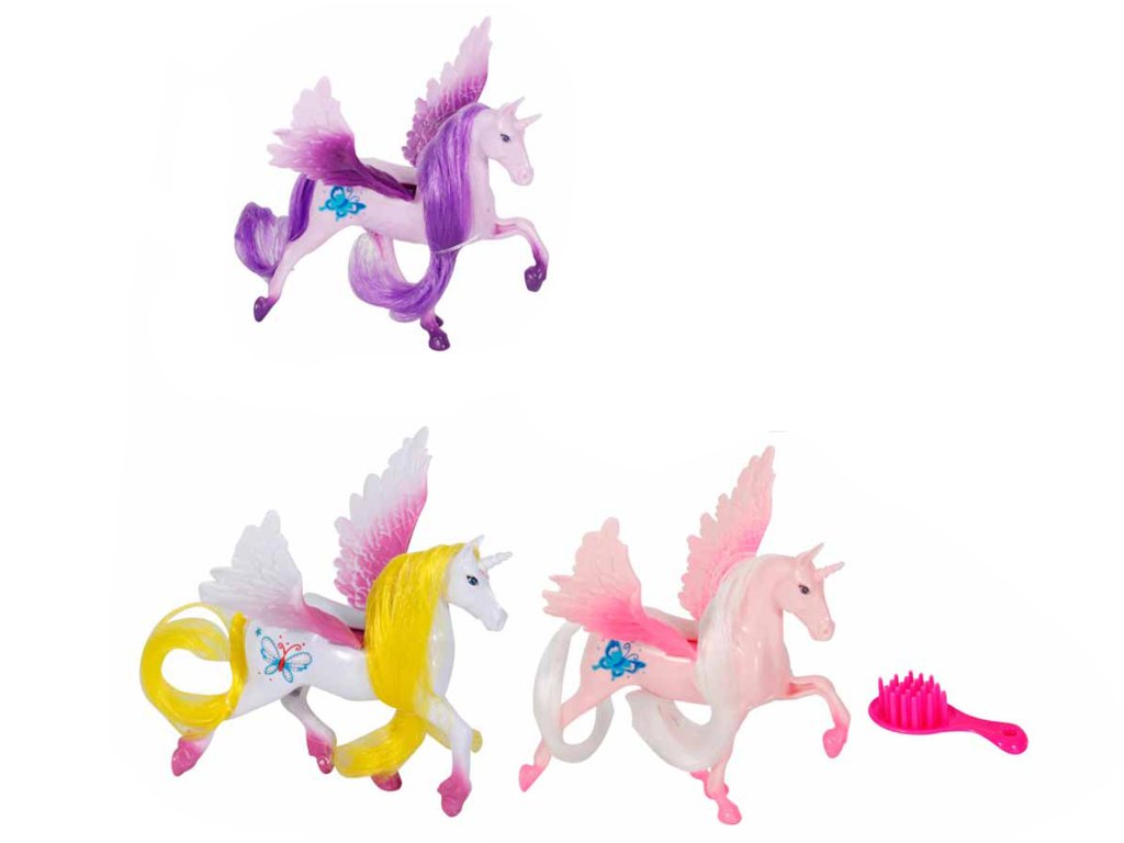 Jednorožec s hřebenem. Velikost 11 cm. 12 ks display box. 3 varianty - bílá, růžová, fialová.