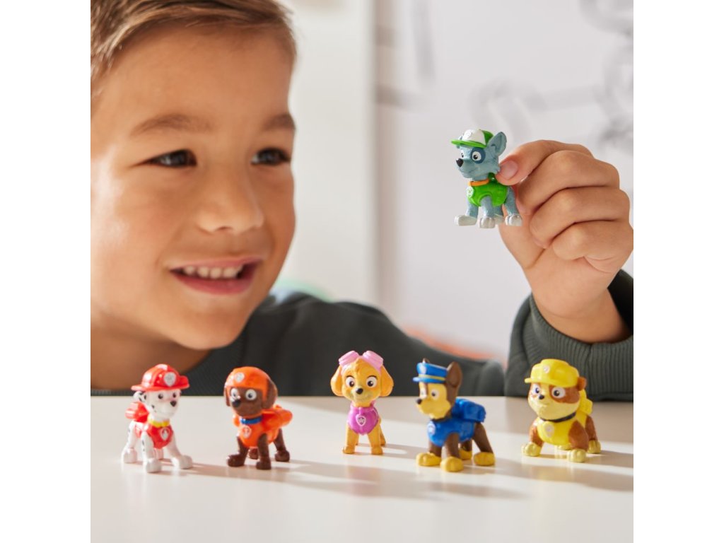Připravte se na vzrušující překvapení, až si rozbalíte figurky psí čety Pup Squad ze světa Tlapkové patroly! Kterou si pořídíte? Každá z figurek psí čety je samostatně zabalená a patří k ní 3 originální samolepky Tlapkové patroly. Každý pejsek měří necelých 5 centimetrů a skvěle se vejde do dlaně nebo do kapsy! Vezměte si je kamkoli s sebou a můžete zažít vzrušující hry i na cestách! Každý pejsek z Tlapkové patroly je oblečený v autentické uniformě z filmu Tlapková patrola: ve velkofilmu s propracovanou srstí, takže vypadají stejně jako na velkém plátně (prodávají se samostatně)! S hračkami ze světa Tlapkové patroly může dítě při hraní rozvíjet svou představivost a motorické dovednosti a zároveň prožívat své oblíbené scény z filmu! Pro ještě zábavnější a napínavější mise inspirované seriálem Tlapková patrola sbírejte všechny hračky z filmů o Tlapkové patrole, jako je například úžasná velitelská letadlová loď, a všechny hračky ze speciální edice Tlapkové patroly pro holky a kluky, jako jsou figurky a hrací sady Mighty Pups, Aqua Pups a Big Truck Pups (každá se prodává samostatně), a užijte si nekonečná dobrodružství s oblíbenými psími hrdiny z filmu Tlapková patrola: ve velkofilmu, se závodníky Pup Squad Racers!