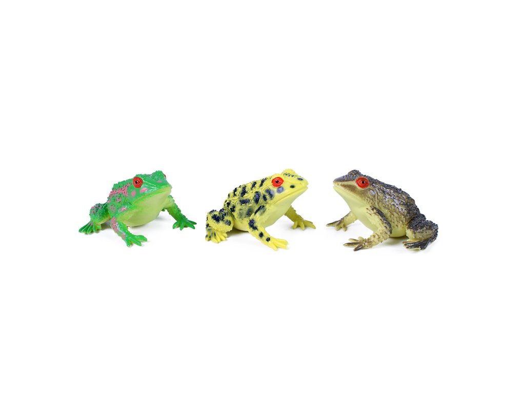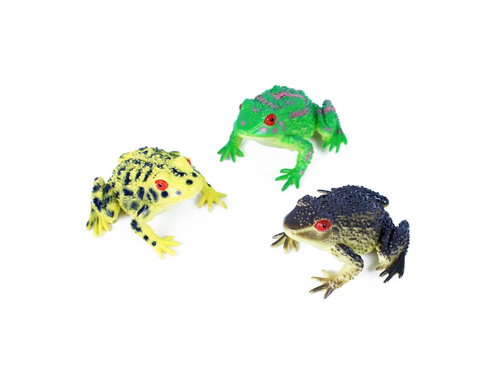 Tropické žáby nesmí ve tvé sbírce zvířátek chybět! Po zmáčknutí břicha začne vydávat zvuky (píská). Tyto parádní kousky prodáváme v balení po 12 ks. Uvedena cena je za 1ks. Není na baterie. Žabičky jsou ve třech barvách.