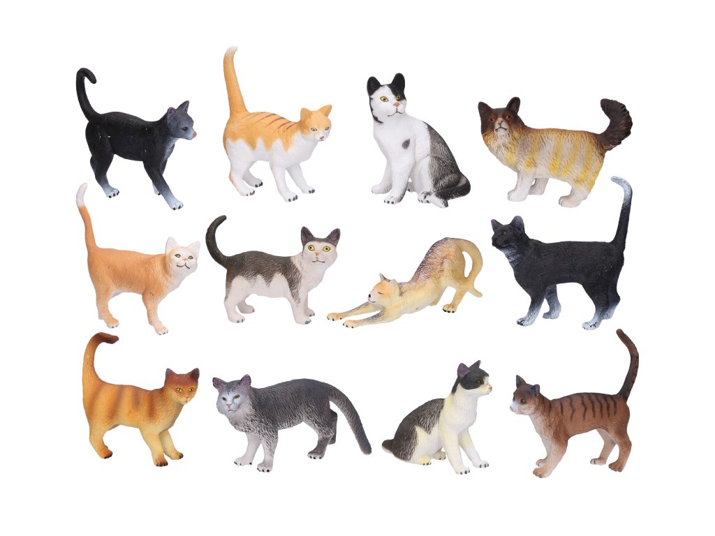 figurky zvířátka kočky, display box 12 ks, velikost 12 cm