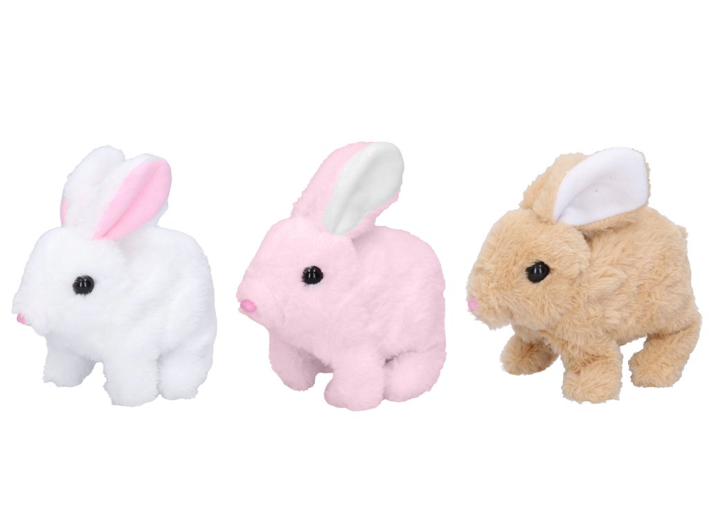 Králík chodící. Velikost 15cm. Baterie 2xAA nejsou součástí. Display box - 8ks. 3 varianty - bílá, růžová, hnědá