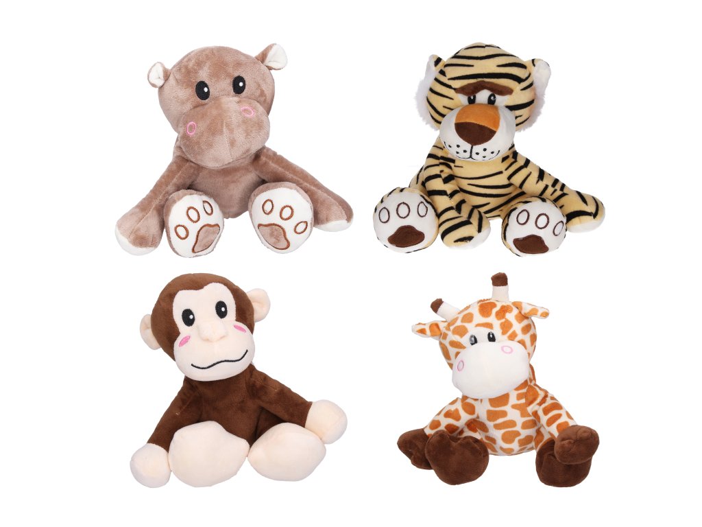 Zvířátko. Velikost 22 cm. 4 varianty - žirafa, opice, tygr, hroch.