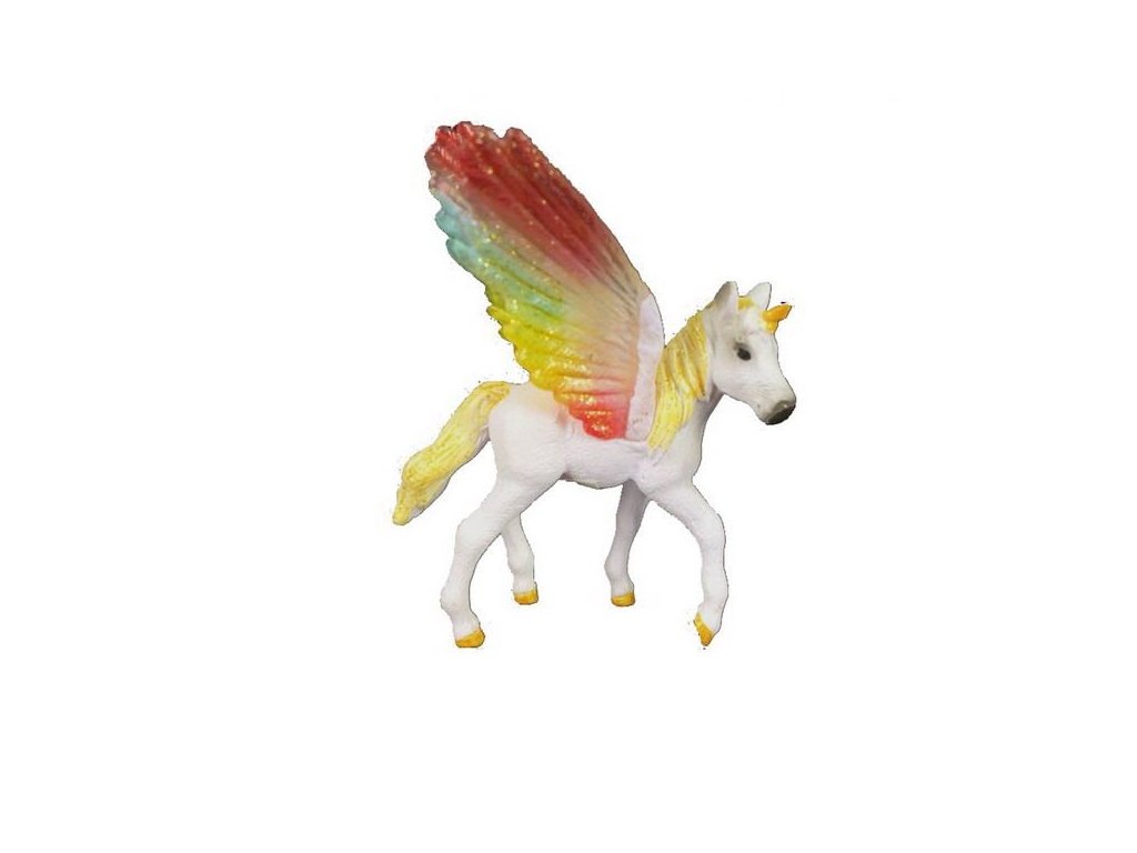 Figurka Jednorožec s křídly. Velikost 9 cm. Přesné rozměry 7,5x2,3x9,4 cm.