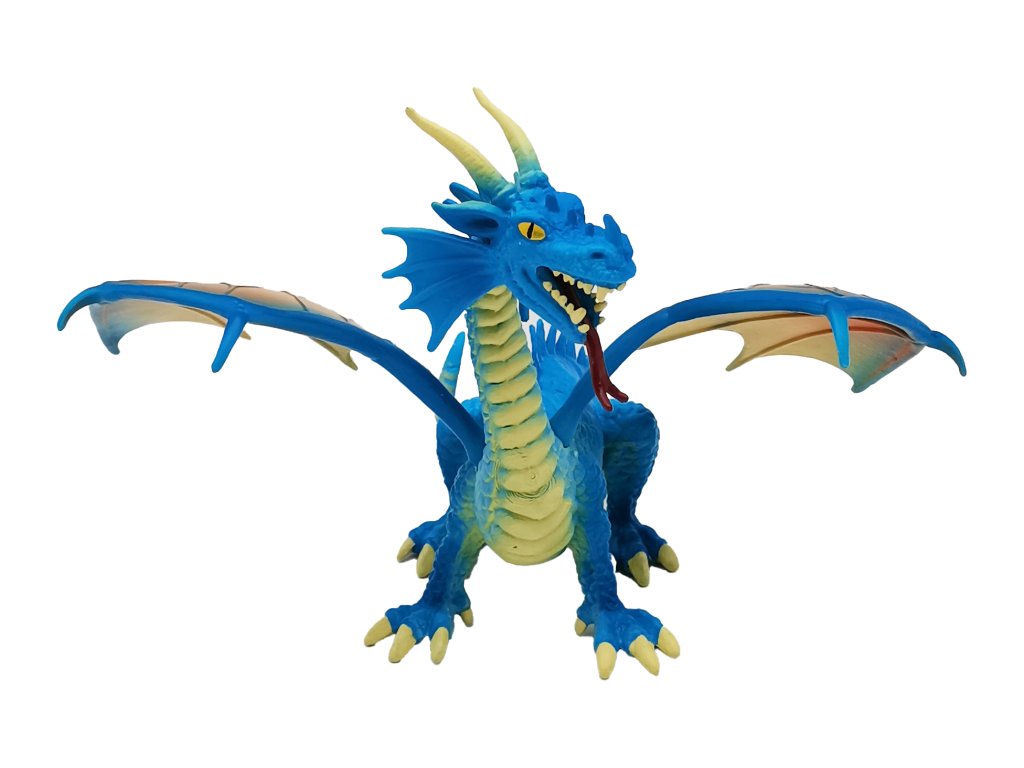 Figurka Drak modrý. Velikost 15,5 cm. Přesné rozměry 14,7x15,5x14 cm.