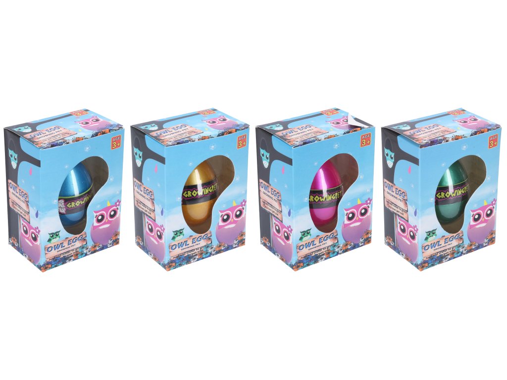 Vejce rostoucí sova. Velikost 6,5 cm. 12 ks display box